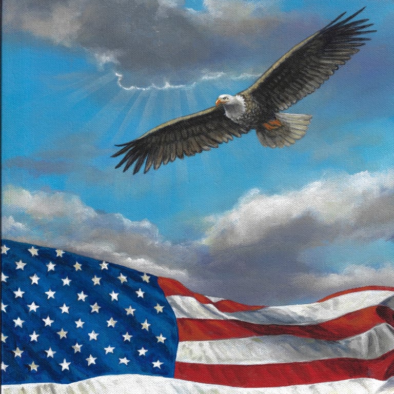 With all that's going on in our country and the world, I believe it's time to turn back to our Lord and savior, Jesus Christ. I believe God has blessed our country and made it great. I would like encourage everyone to take pride in this great nation and what it stands for. My latest series is a tribute to the US flag, the eagle and what it represents, and all those who have served.